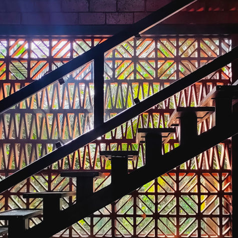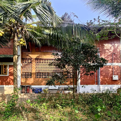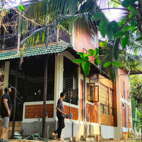 In the beautiful winding lanes of Nadal, off the Kannur Bypass and up a climb of a charming rustic Kerala road, in the lap of nature is QuikBrik House, a sustainable house tailor-made for its picturesque location. A completely load-bearing house of abundantly available laterite stone for the foundation, compressed stabilized earth blocks (CSEB) made of locally sourced earth for walls, Hourdi block with ceiling and terracotta tiles for the roof that reflects the region's traditional architectural style while embracing modern environmentally conscious practices.